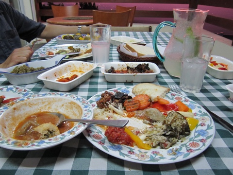 Dinner was not only the highlight of the day, but of the trip so far. We checked our guide book for a recommendation and found a Kurdish restaurant in a Moshav near the border with Lebanon that sounded great. We had no idea what we were in store for. When we arrived in Shatula what we though was going to be a restaurant was actually Ora and her mother Sarah’s house. They greeted us at the front door and kindly asked us to have a seat on their back patio. We weren’t eating in a business, we were eating in their home. To start, the view with the sun setting, looked out onto Lebanon. It was quite literally their back yard. Music and singing could be heard from across the border and jackals called to each other as the sun went down.